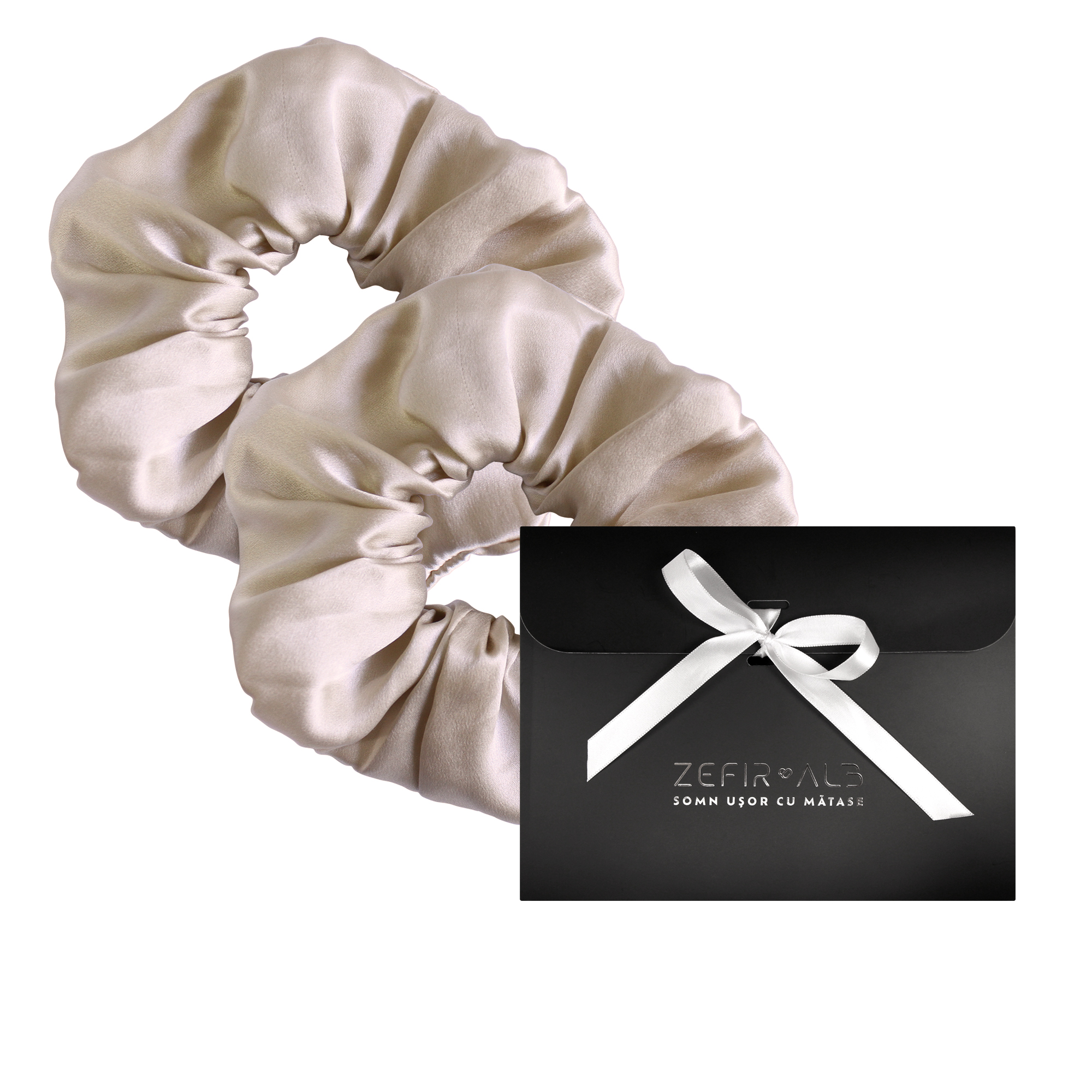 - 2 accesorii par 100% matase naturala Zefir Alb