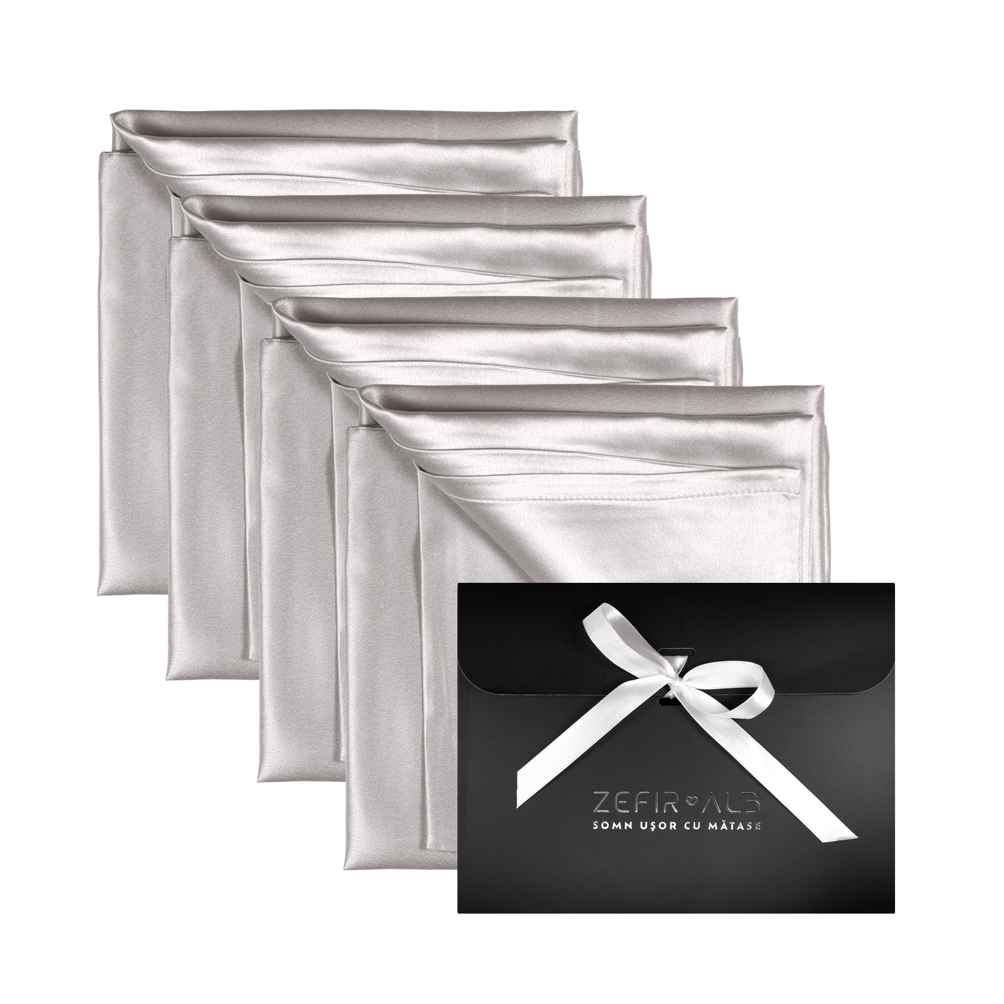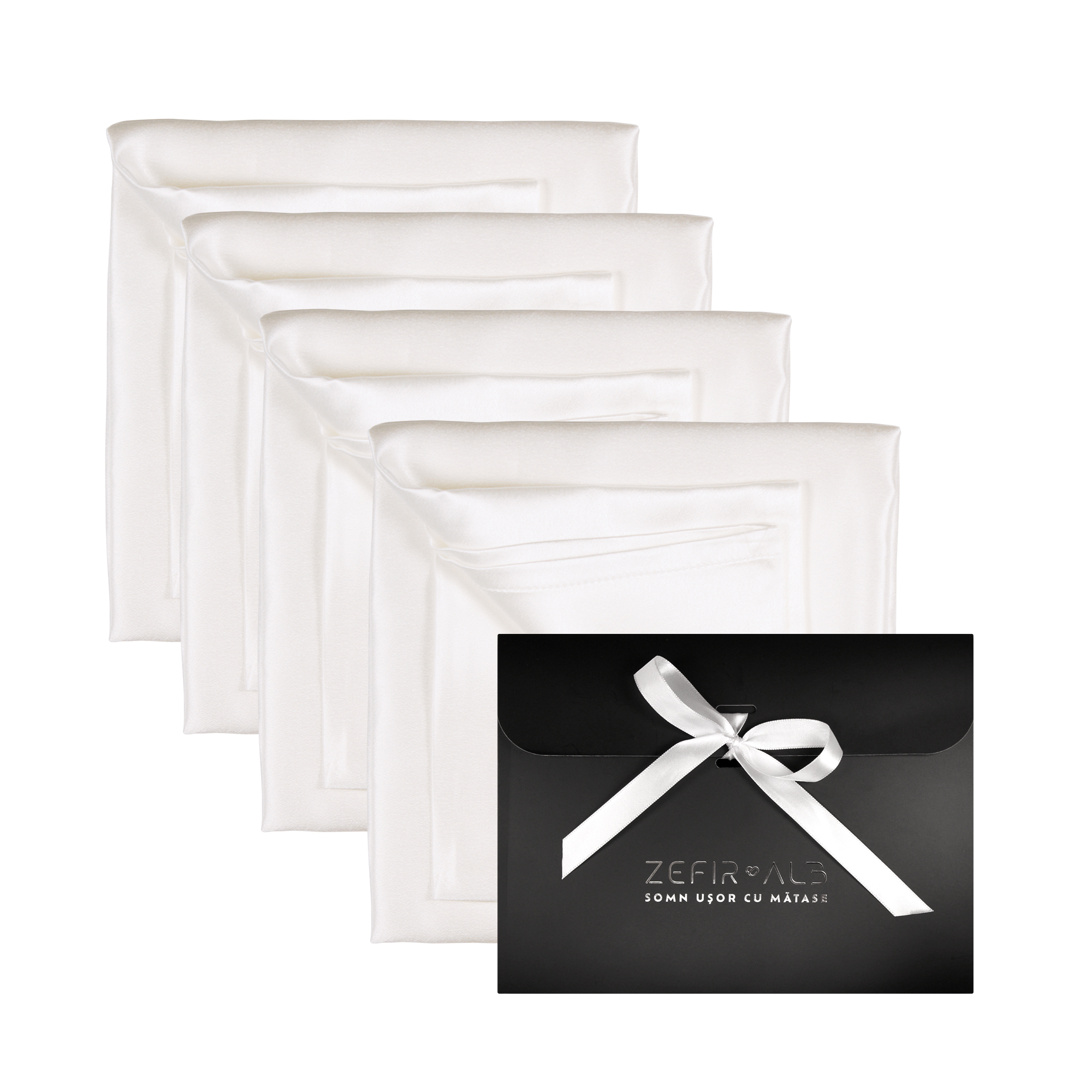 - 4 accesorii par 100% matase naturala Zefir Alb
